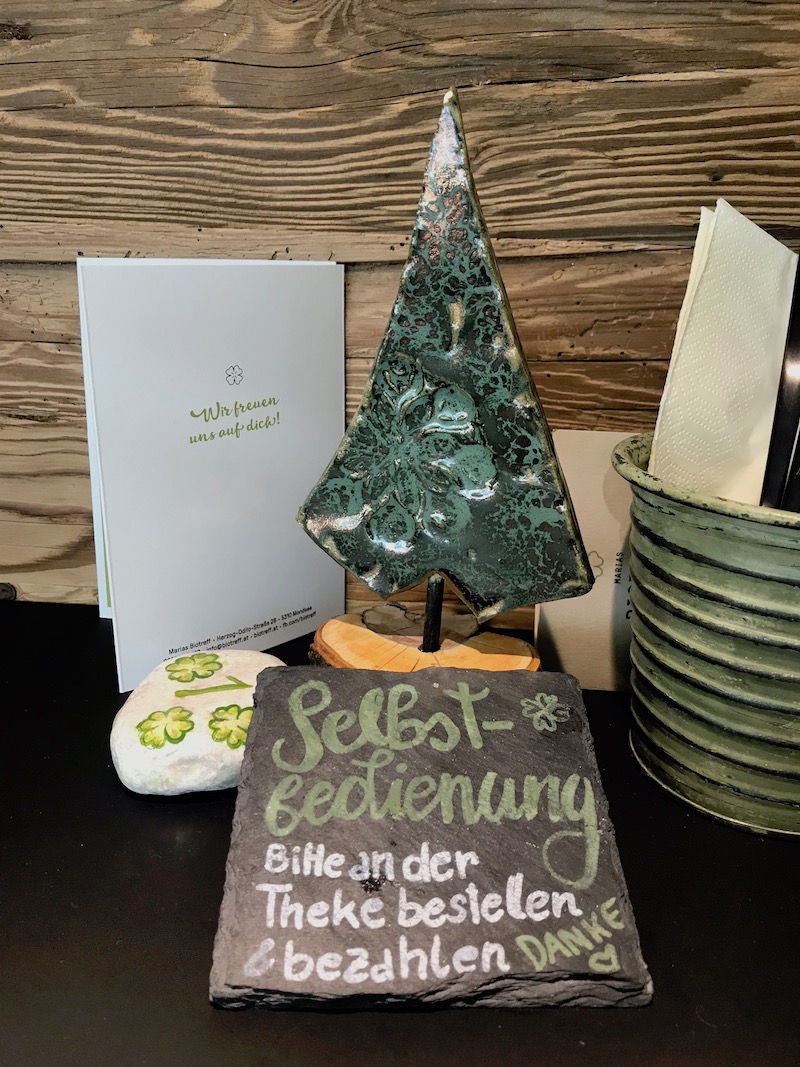 Neben der Nahversorgung und dem Essen gibt es hier noch so viel mehr. Es wird diskutiert über glutenfreien Hafer, über das morgige Mittagsmenü und natürlich über das Wetter. Die fast schon verlorengegangene Ortsidylle lebt hier, wenn auch in ganz anderer Form, wieder auf. Man kennt sich und man kennt und schätzt Maria und ihr fünfköpfiges Team. Und auch Fremden gegenüber ist man aufgeschlossen. Und wer einmal hier war, der kommt wieder, so wie ich.