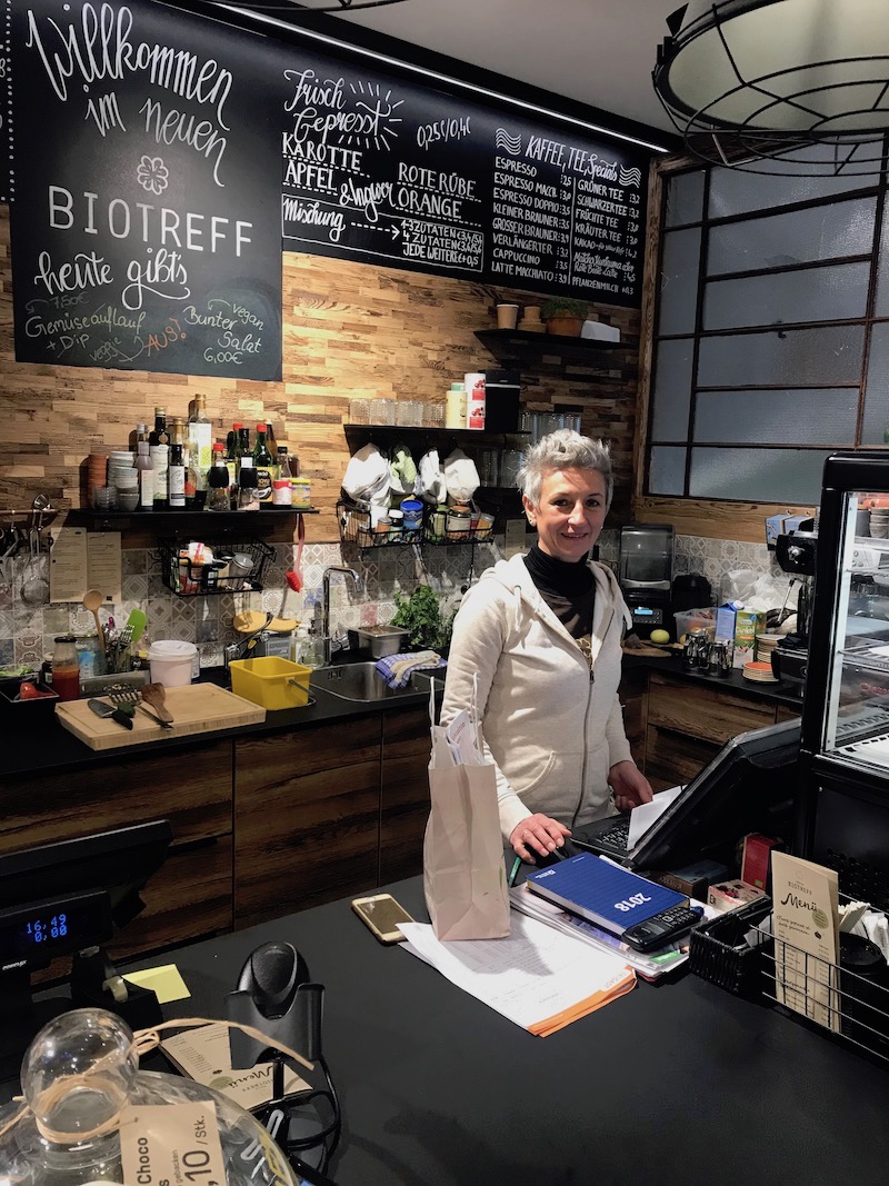 - Maria in ihrem Bioladen.