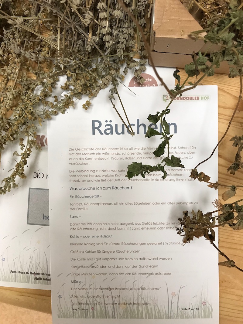 Es duftet schon von weitem nach Kräutern und irgendwie fühlt man sich gleich wohl, hier am Korndobler Hof in Obertrum am See, wo die Biobäuerin Resy Strasser ein Seminar zum Thema „Räuchern in den Raunächten“ abhält. Die Leidenschaft mit der sie über das Thema spricht, nimmt einen gefangen und entführt die Gedanken in eine vergangene Zeit. Eine Zeit in der die Menschen die Natur intensiv spürten und die heilenden Kräfte die der Duft von Räucherstoffen auf sie hatte schätzten.